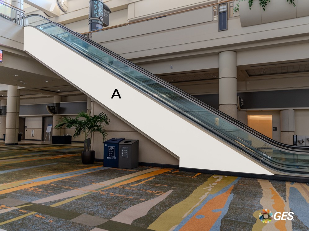 - Mounted on escalator glass